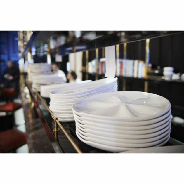 La forme ouverte jonglant entre l’ovale et le rond de l’assiette à huître en porcelaine invite à la dégustation de vos huîtres qu’elles soient chaudes ou froides, elles seront parfaitement mises en valeur.