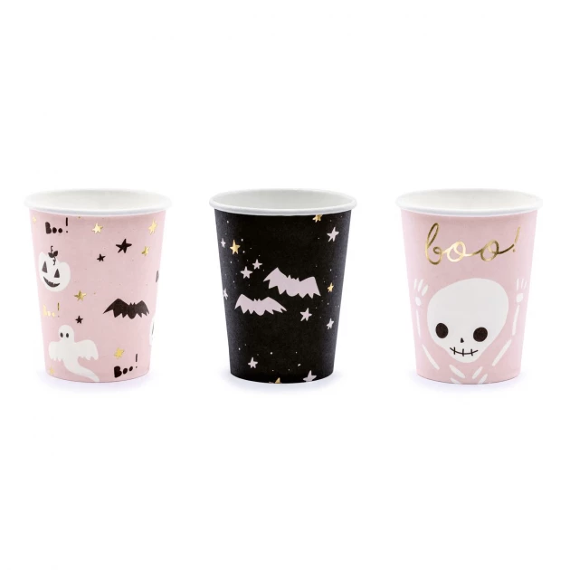 Fabriqués en papier rigide et biodégradable, ces verres halloween apporteront une touche mignonne et réconfortante au milieu des histoires d’horreur et des déguisements terrifiants. Composé de 6 gobelets Halloween avec 3 décors différents, ce set de gobelets PartyDeco émerveillera vos enfants avec ses couleurs rose pale, blanche et noir ainsi que quelques touches de doré pour le côté festif.